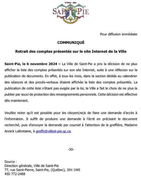 ERRATUM : Dans la deuxième période de questions, un citoyen demande où se situe le poste de pompage # 1. Il lui est répondu qu’il est situé près de la « dame » sur la rue Notre-Dame. Cependant, le poste de pompage # 1 est situé à la sortie de la Ville vers le rang du Bas-de-la-Rivière.