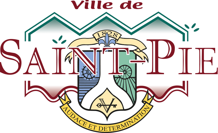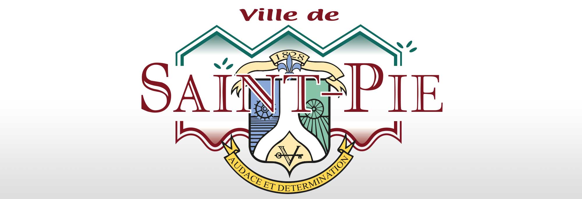 L’écu central est divisé par une bande en forme de Y inversé représentant le confluent des rivières Yamaska et Noire, lieu géographique autour duquel la Ville de Saint-Pie fut fondée (ancienne Ville et ancienne Paroisse fusionnées en février 2003)